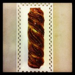 מכינים את הבצק: מערבלים קמח, סוכר, שמרים ומשפר אפייה במיקסר עם וו לישה. מוסיפים ביצים, מים, תמצית וניל וקליפת לימון ומערבלים במשך כ-2 דקות עד לקבלת תערובת אחידה. מוסיפים קוביות חמאה אחת-אחת עד שהן נבלעות בתערובת ולשים כ-7 דקות עד לקבלת בצק רך ומעט דביק. מוסיפים מלח ולשים כדקה נוספת. מעבירים את הבצק לקערה מקומחת, מכסים בניילון נצמד ומכניסים למקרר ל-4 שעות ממלאים, מעצבים ומתפיחים: מחלקים את הבצק ל- 3 חלקים, ומרדדים כל חלק על משטח מקומח למלבן בעובי 1/2 ס”מ. מורחים ממרח שוקולד בצורה שווה ומפזרים פירורי עוגיות ואגוזים קצוצים. בצד הבצק הקרוב אלינו יוצרים מכפלת קטנה ומתחילים לגלגל. תוך כדי גלגול מושכים את הבצק אלינו (לכיוון ההפוך)- המשיכה מבטיחה שיתקבל גליל הדוק בעובי אחיד. חוצים את הגליל לאורכו בעזרת סכין חלק. מניחים את שני חצאי הגליל זה על זה בצורת X כשצידם הפתוח פונה לאותו צד, מלפפים לצמה ומהדקים בקצוות. מניחים את הצמות בתבנית אפייה משומנת, מברישים בביצה ומתפיחים כ-45 דקות. מחממים תנור ל-170 מעלות. אופים כ- 35 דקות עד להזהבה קלה. מוציאים את הקראנצ'ים מהתנור ומברישים בסירופ בעודם חמים (הסירופ צריך להיות קר). שומרים מחוץ למקרר עד 3 ימים.